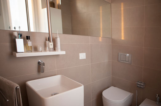La fusione della doccia intesa come SPA cromatica all'interno della zona letto, diviene funzionale e al tempo stesso emozionale, come una finestra sul benessere.