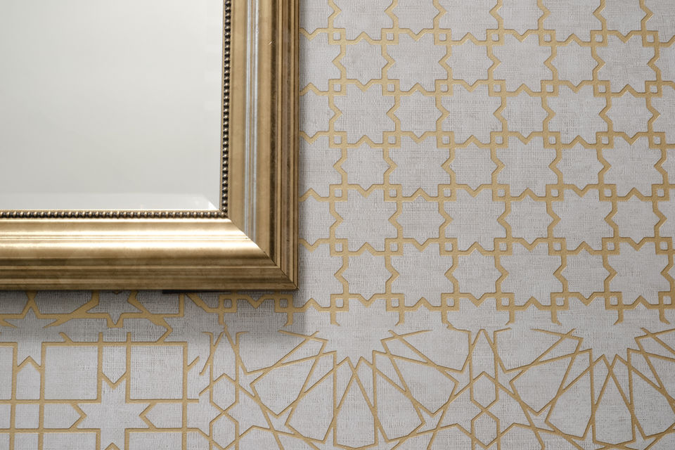 Gli elementi preesistenti dei soffitti decorati con gli stucchi si fondono con il parquet a spina italiana di rovere affumicato, generando un mix unico.